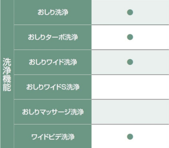 洗浄性能も充実!「おしり洗浄」や「ビデ洗浄」はもちろん、「おしりターボ洗浄」でしっかりとした水流を選ぶことも可能です。
