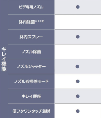 まずはやっぱりキレイ機能!毎日使うトイレだからこそ、清潔を保つ工夫が欠かせません。「ノズル除菌」機能で使用後のノズルを自動で洗浄・除菌。