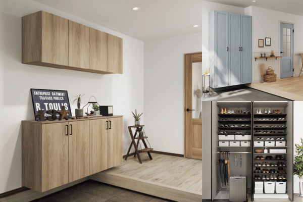 カラーや扉デザイン・組み合わせプランが豊富で、玄関を家の顔としてインテリアに馴染ませながら、すっきり・スタイリッシュな空間にできるのが魅力!