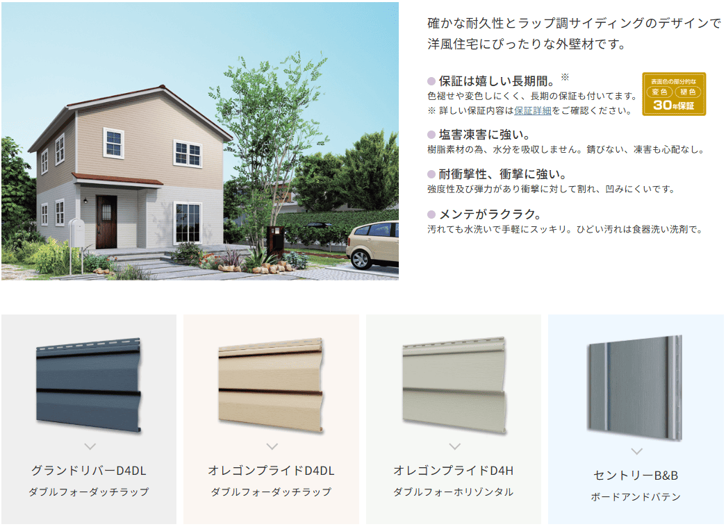● 樹脂サイディング 塩化ビニル製の樹脂素材【メリット】色あせに強い・塗装不要・お手入れ簡単