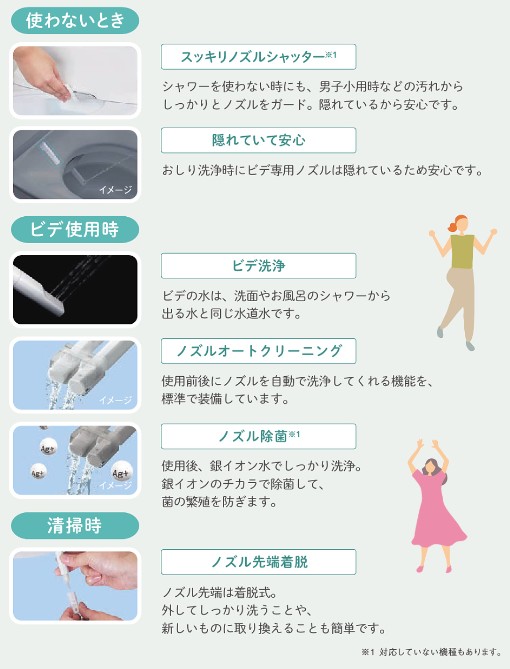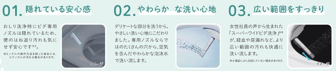 INAXの2本ノズルには、細部まで考え抜かれた3つのこだわりがあります。