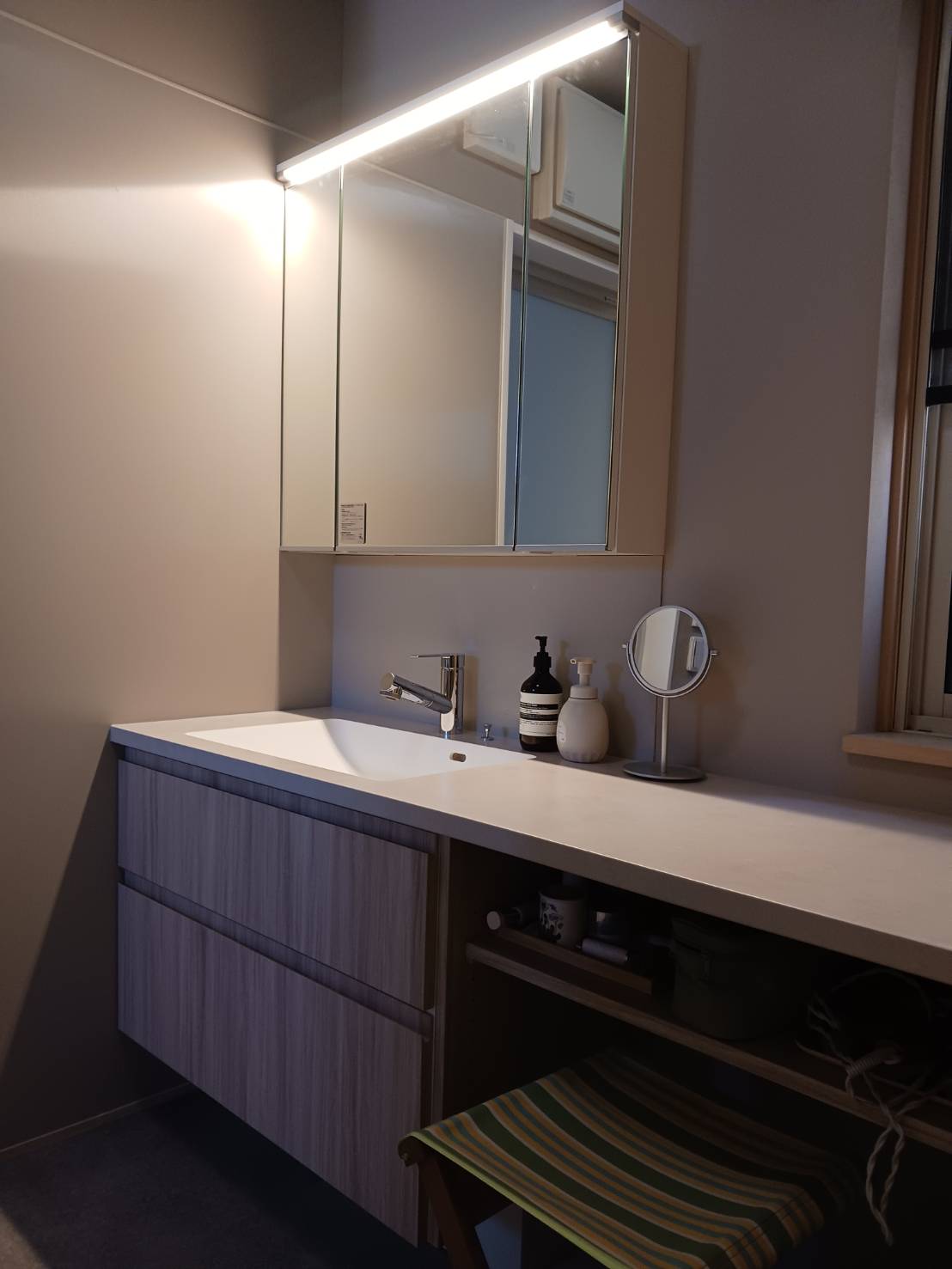 シンプルでありながら、日常の使いやすさとデザイン性を兼ね備えた、快適で清潔感あふれる洗面スペースとなりました。