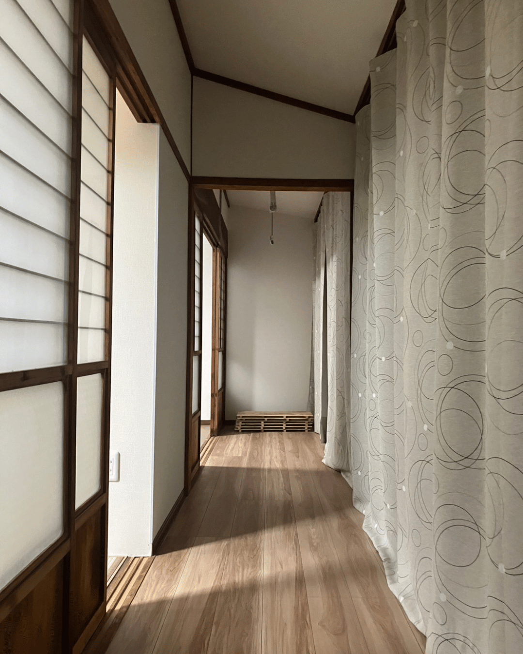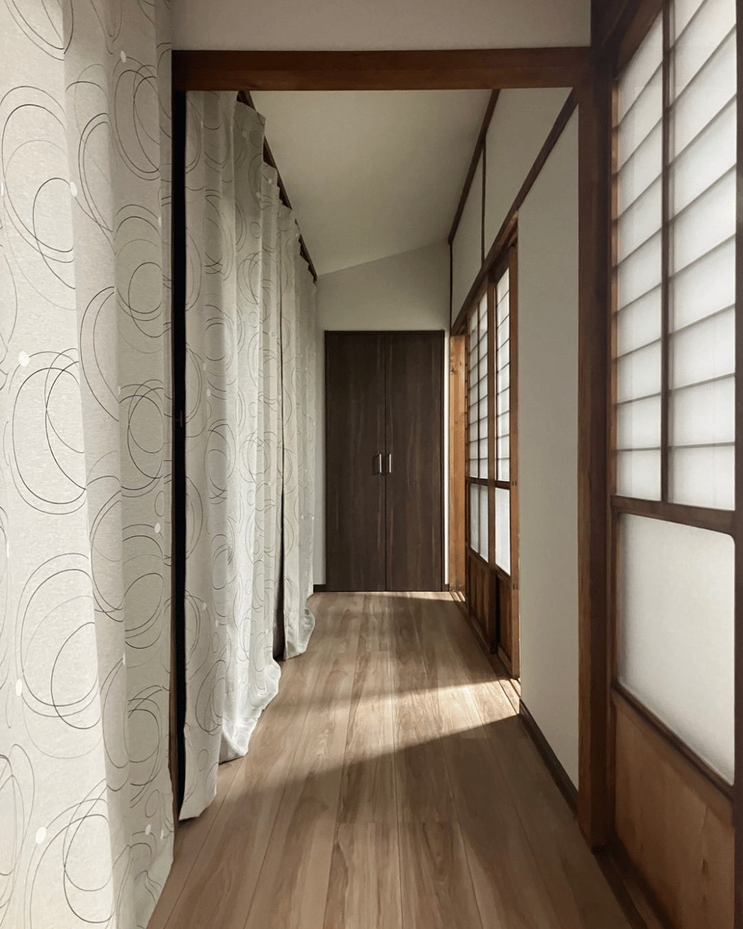 こちらはリビングと縁側につながる建具ですがあえて既存の障子を使いました。まだまだ使える障子であったこともありますが昔の雰囲気を残すために利用させて頂きました。