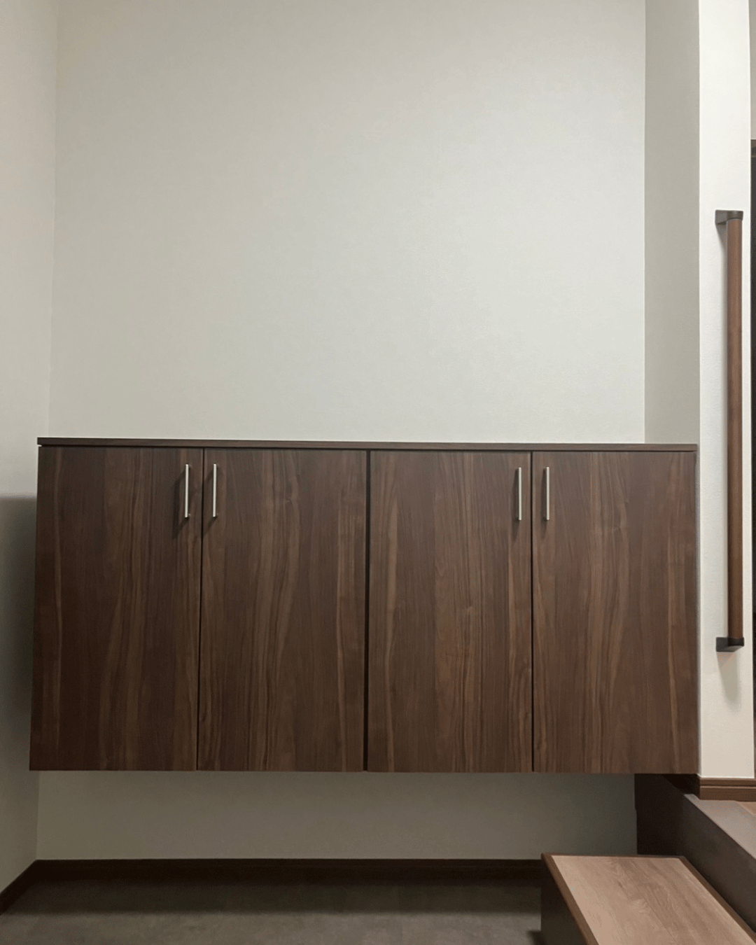 玄関収納がなかったため新たに間仕切り壁をつくり収納スペースを作りました。