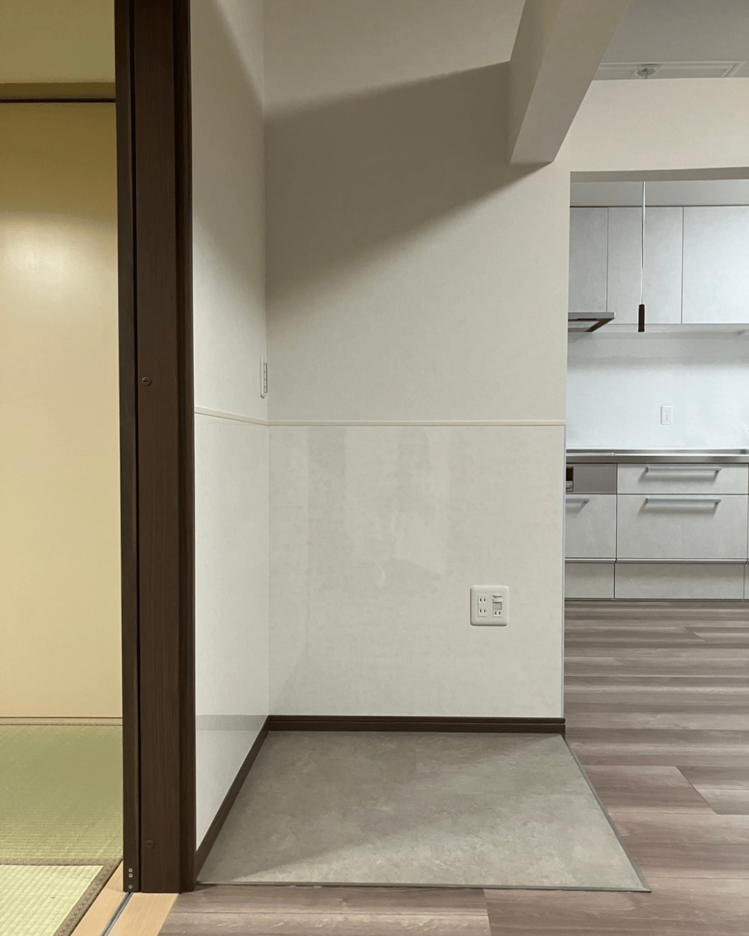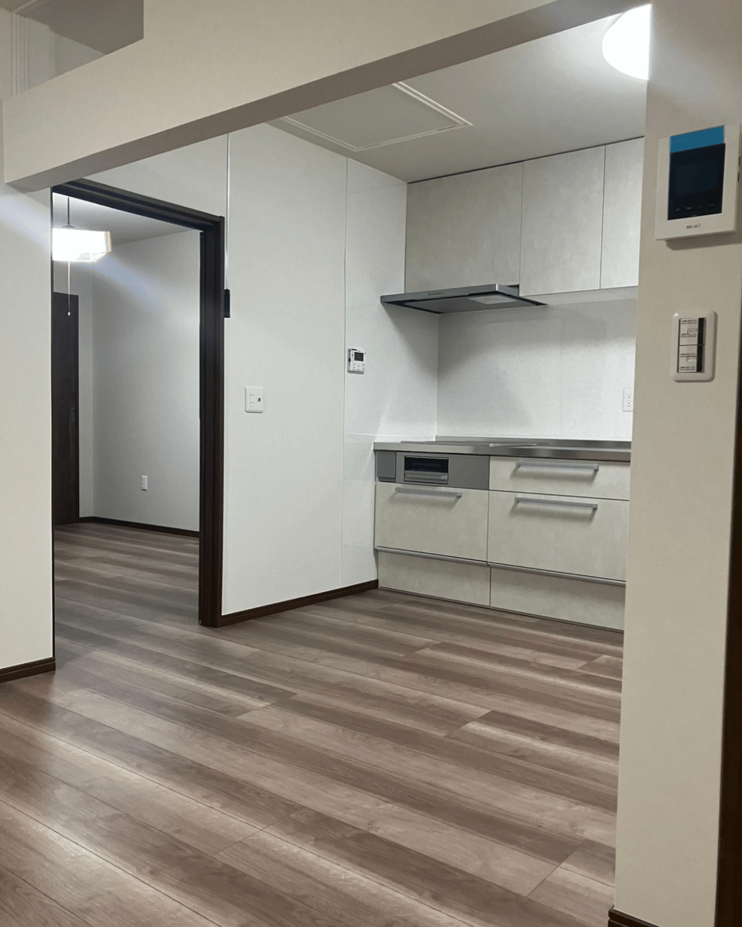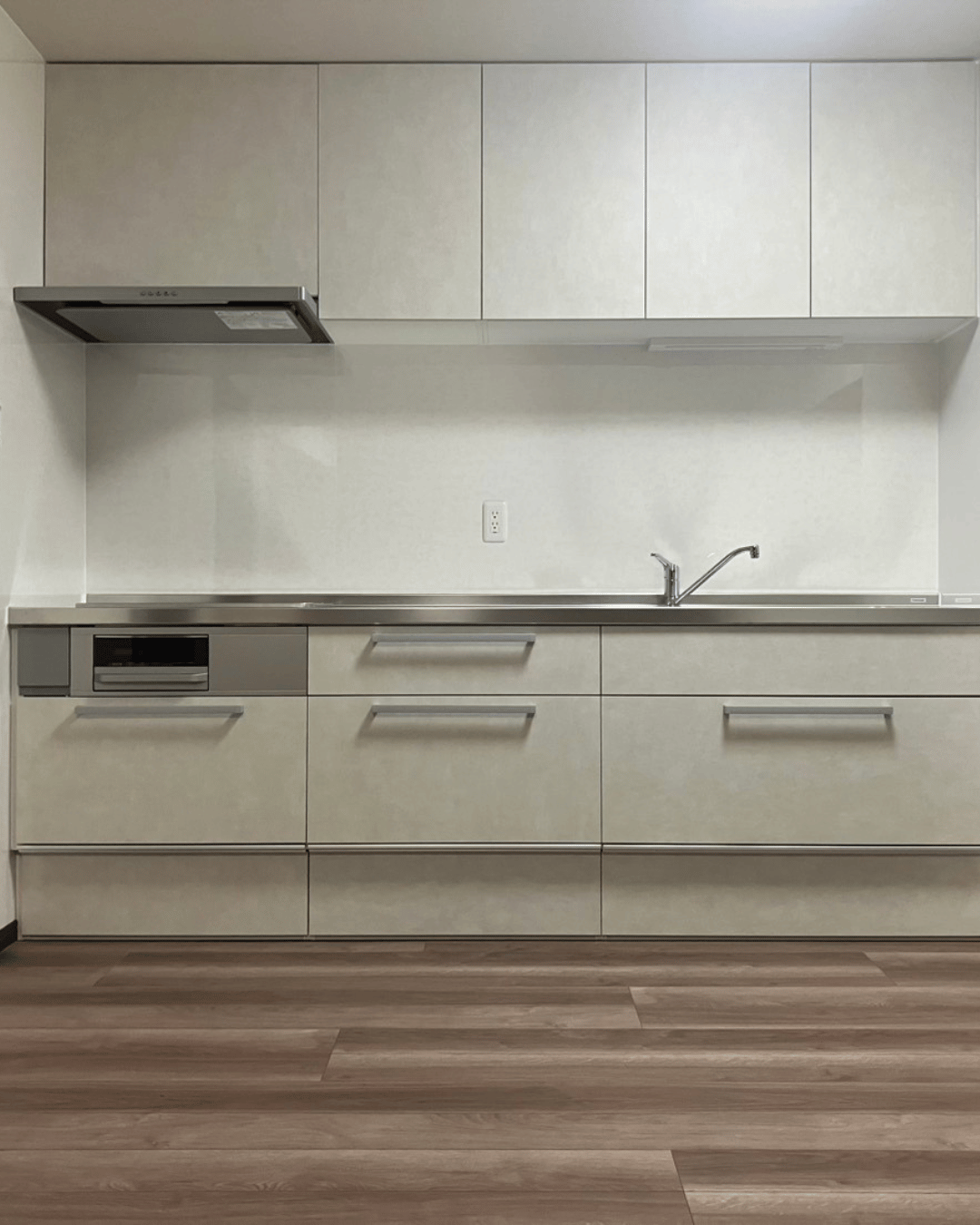 今まで収納スペースだった場所にシステムキッチンを配置しました。