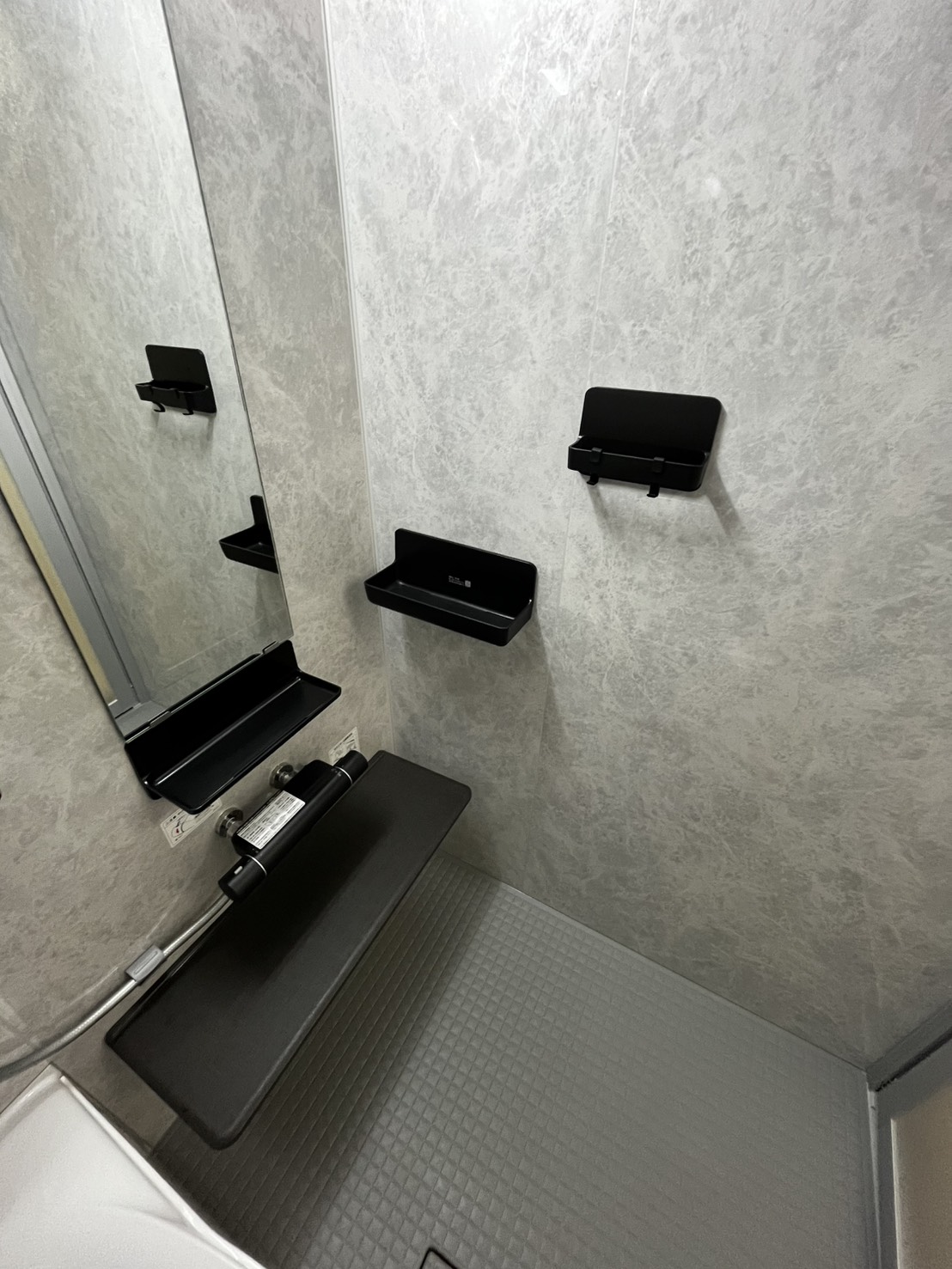グレー×モノトーンのシックデザインのユニットバスがカッコいいです!