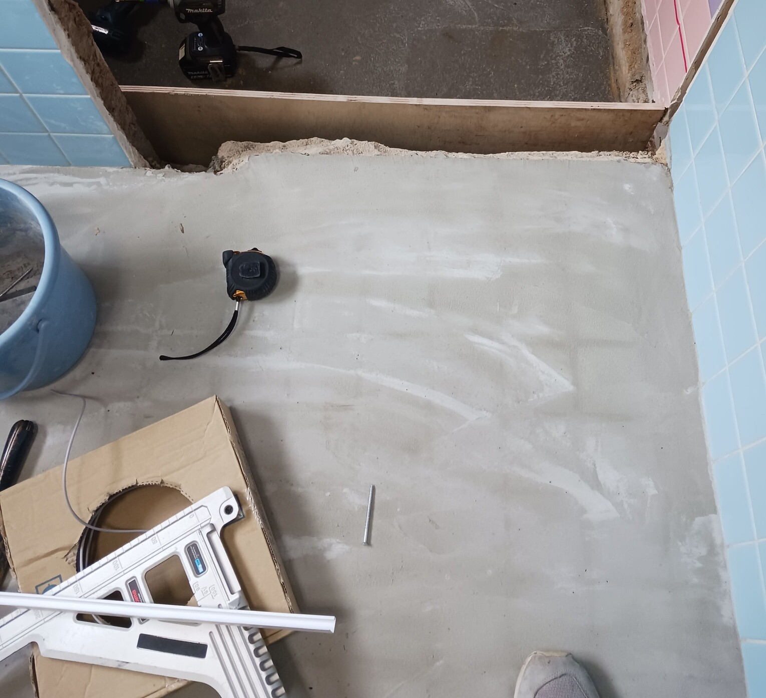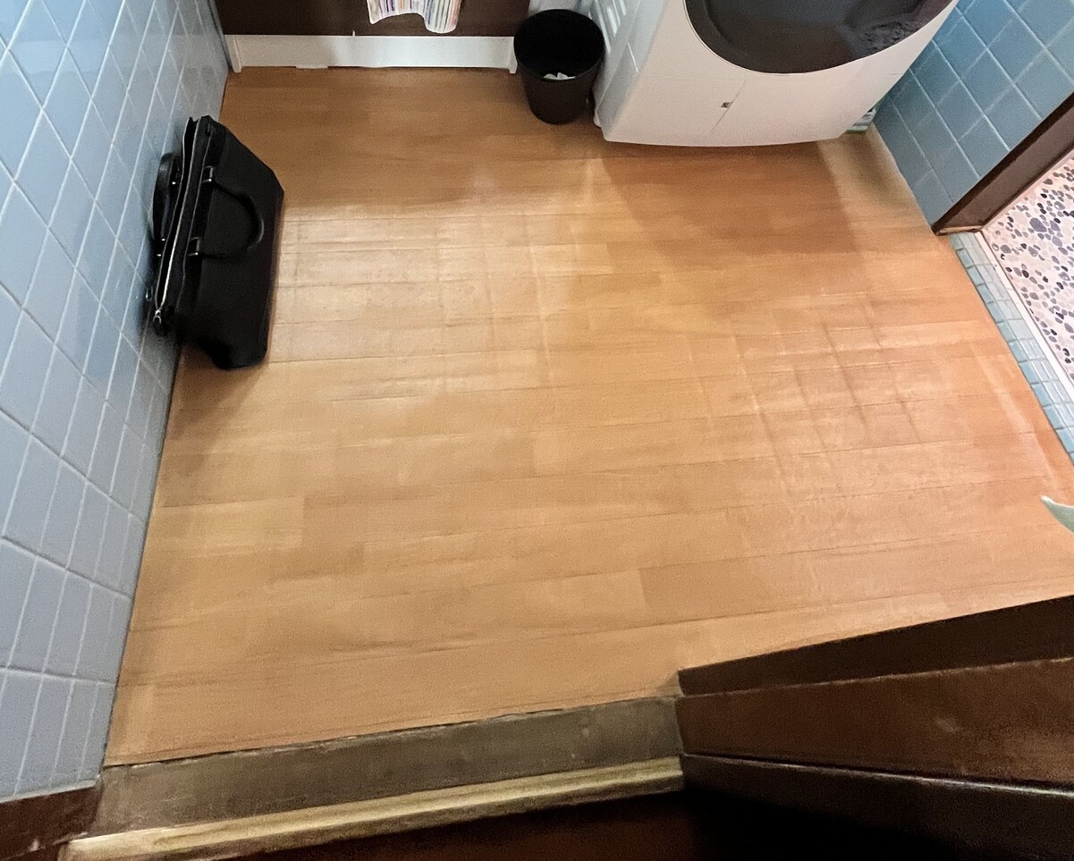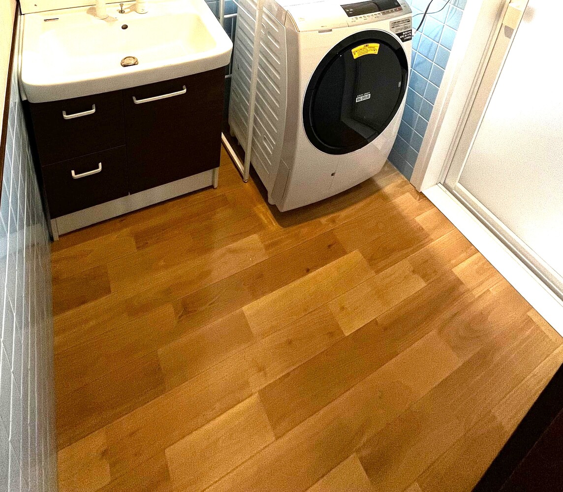 洗面所の床には、もともとお客様がご自身でクッションフロア(CF)を施工されていました👏