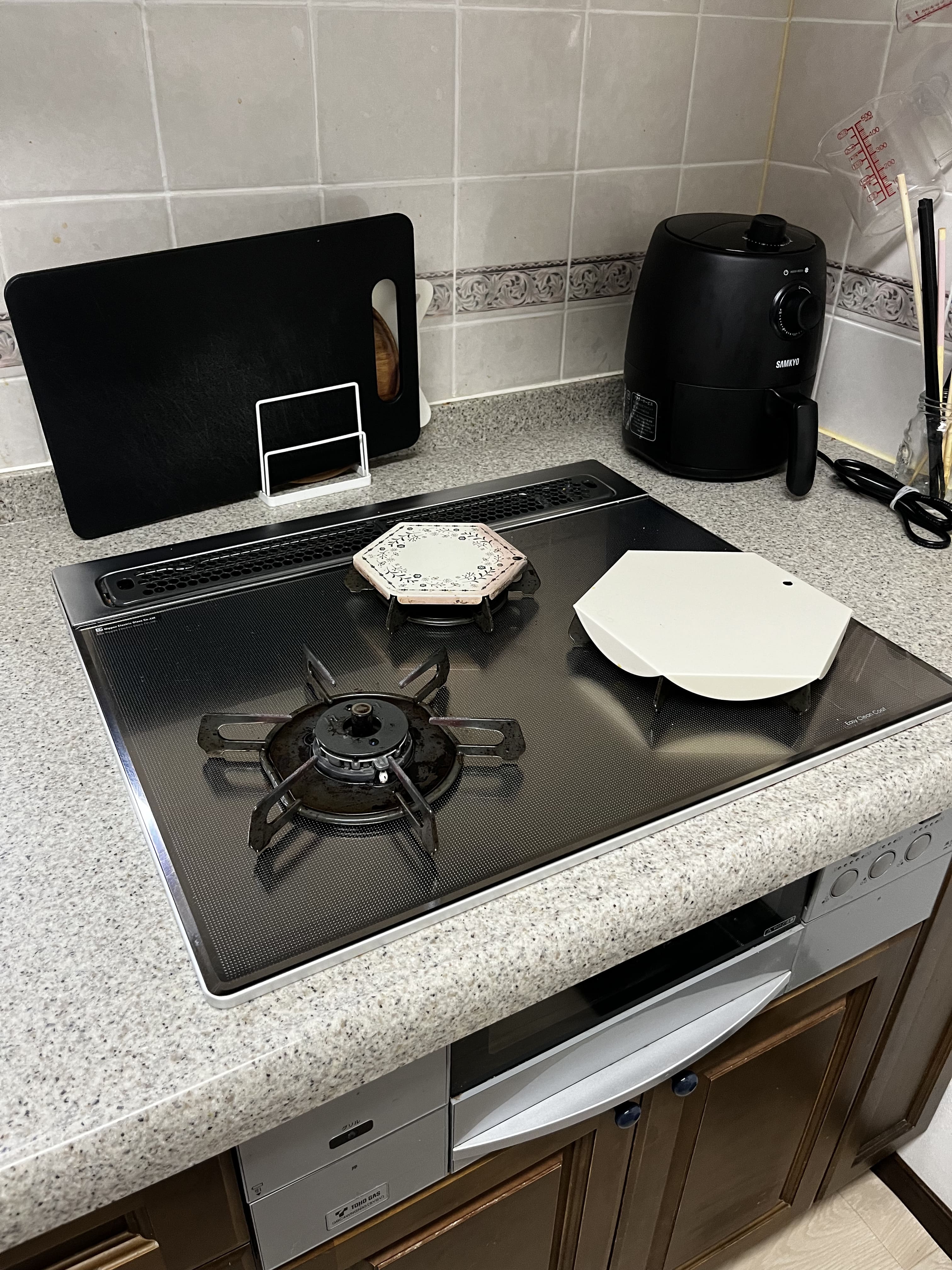 ガスコンロには、**パロマ製ガラストップコンロ「リプラ」**を採用しました。耐久性に優れたガラストップで、汚れが付きにくく、毎日のお手入れが簡単になるのが特長です。デザイン性も高く、キッチン全体がすっきりとした印象になりました。