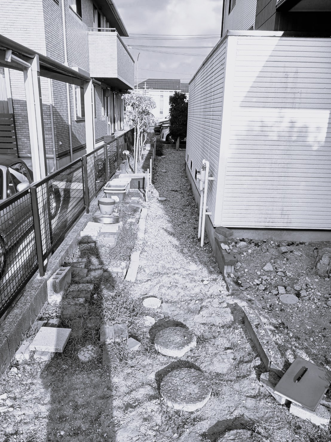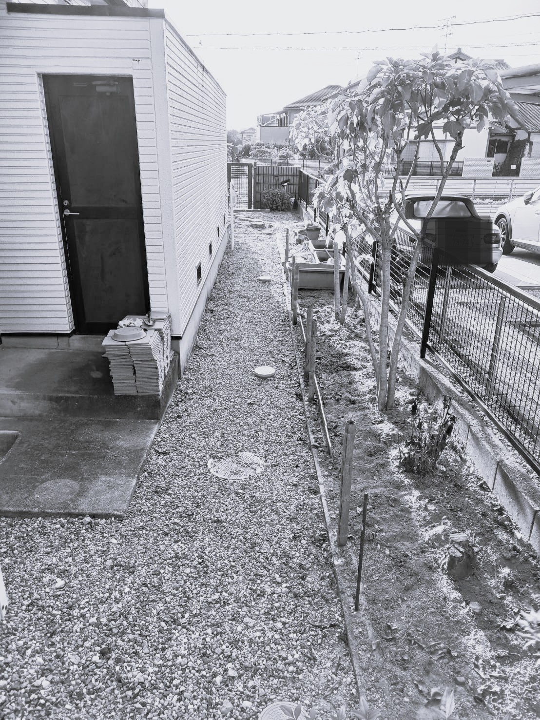 もともとは家庭菜園などお花の手入れをしていたお庭ですが、年齢を重ねるにつれて手入れが大変に、、、、、(>_<)雑草も生えてきてレンガなどガラクタが所々にあり、見た目もちょっと、、、(:_;)と思い今回は今後の事も考え、お手入れがいらないすっきりとしたお庭にリフォームしました。